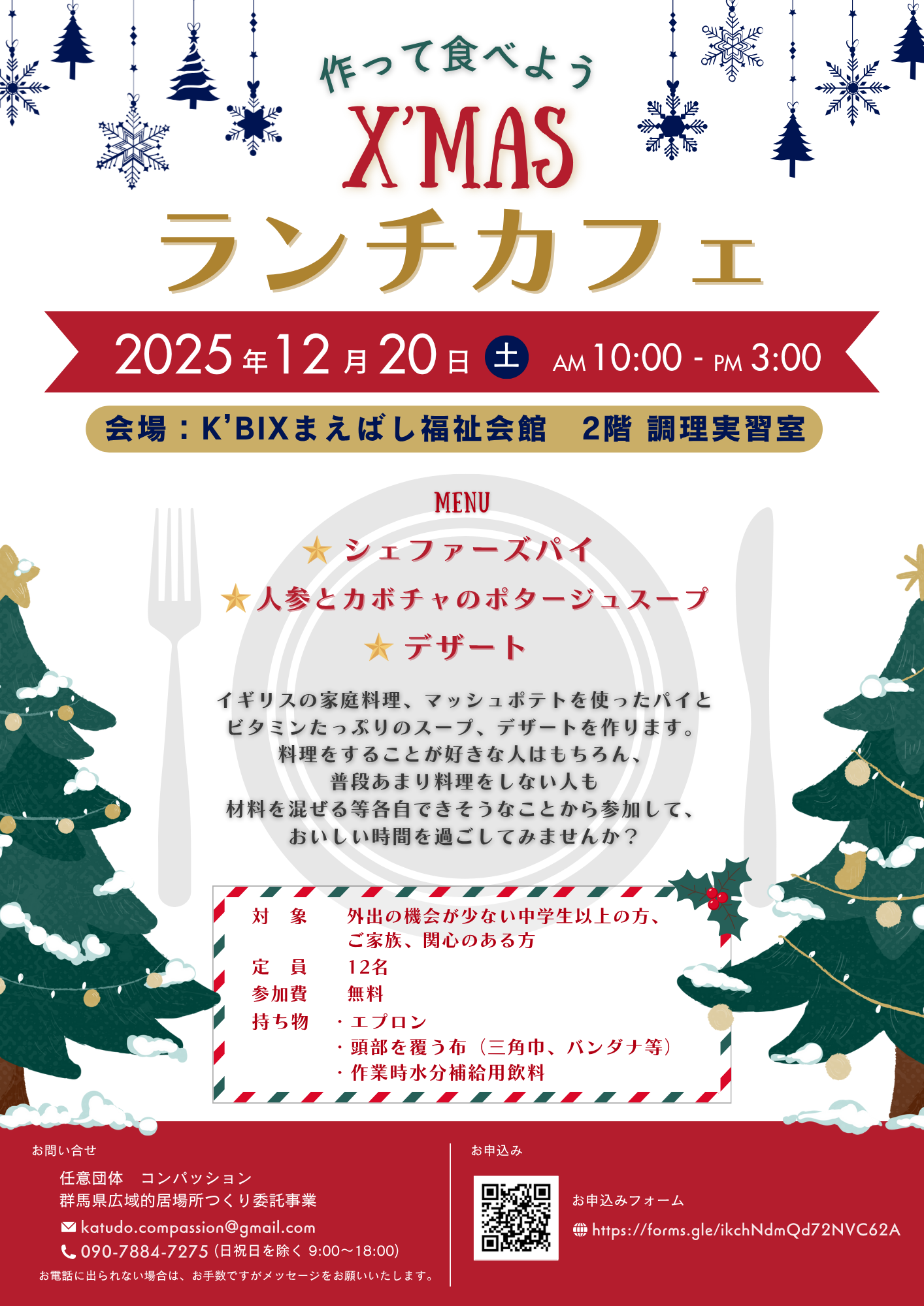 コンパッション(Mサポ利用登録者)より、作って食べよう「X’masランチカフェ」のお知らせです。