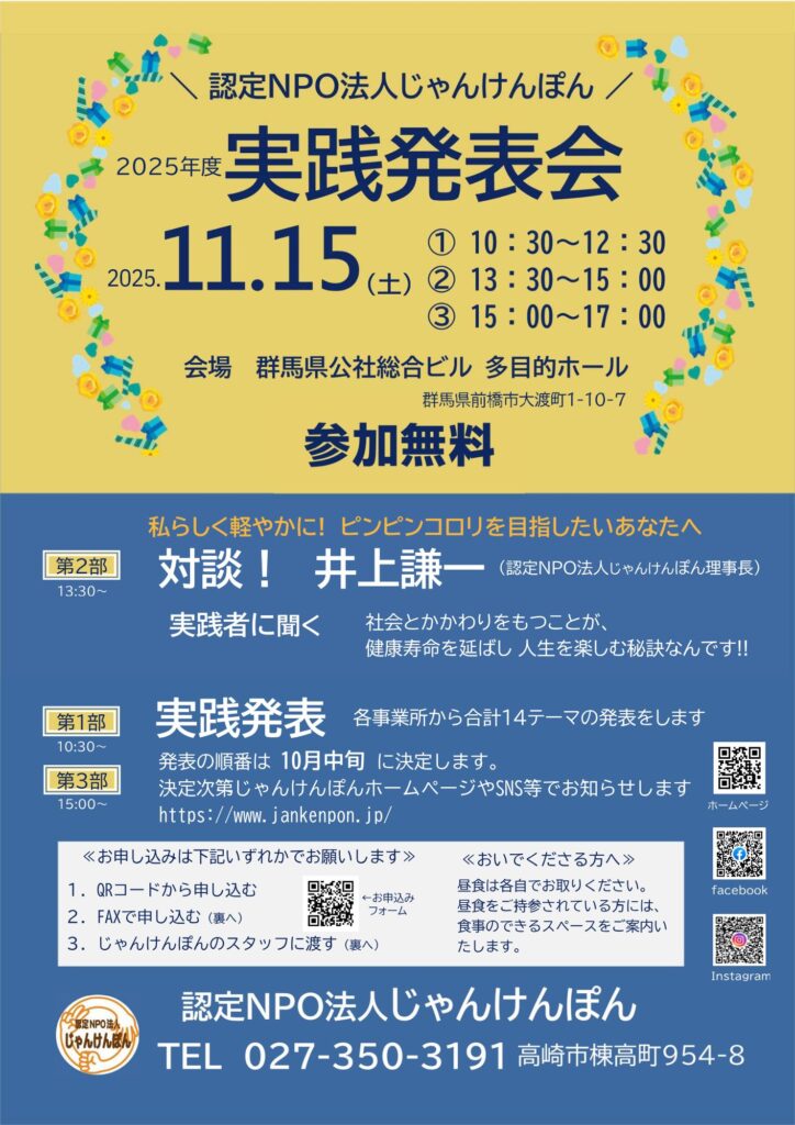認定NPO法人じゃんけんぽん 実践発表会&実践者対談『私らしく軽やかに!ピンピンコロリを目指したいあなたへ』