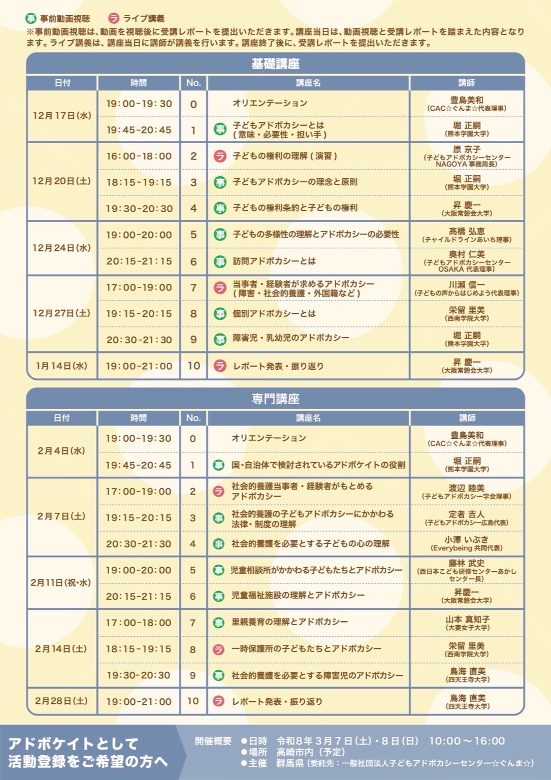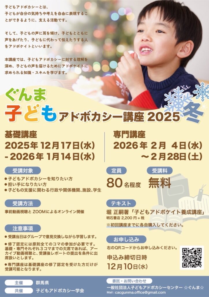 一般社団法人子どもアドボカシーセンターぐんま「子どもアドボカシー講座2025冬」