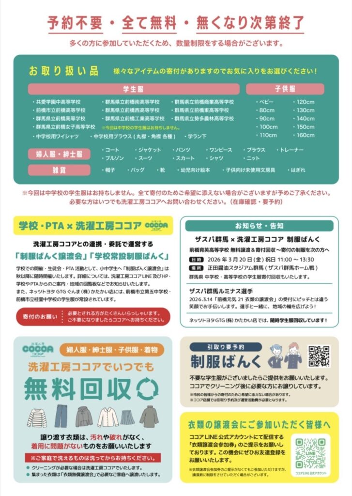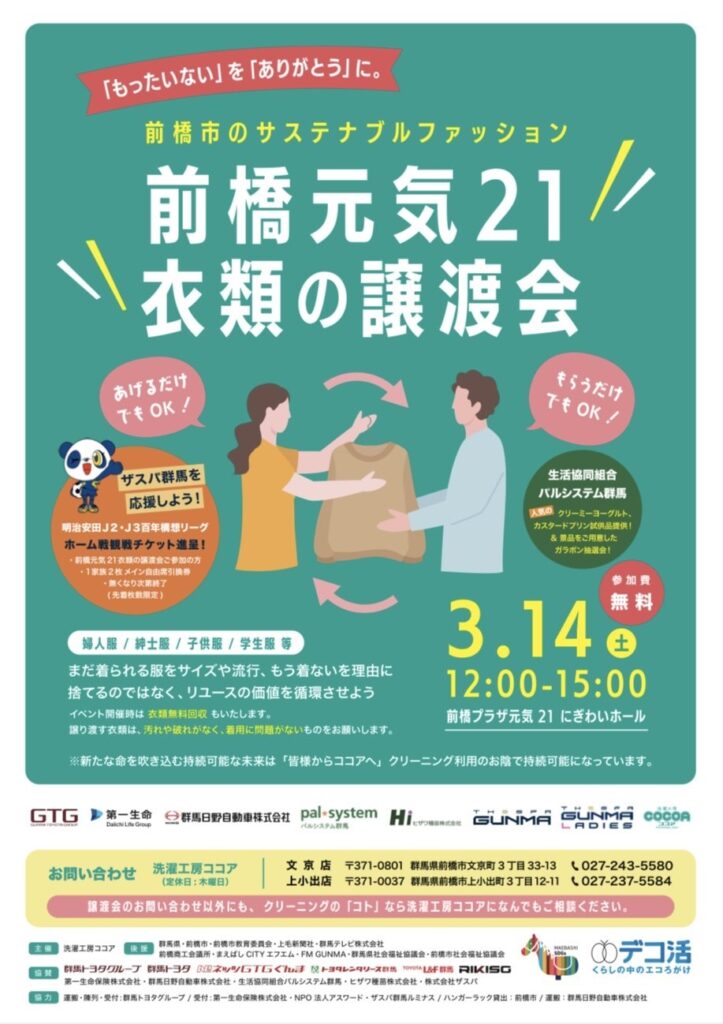 洗濯工房ココア「前橋元気21衣類の譲渡会」3/14(土)開催