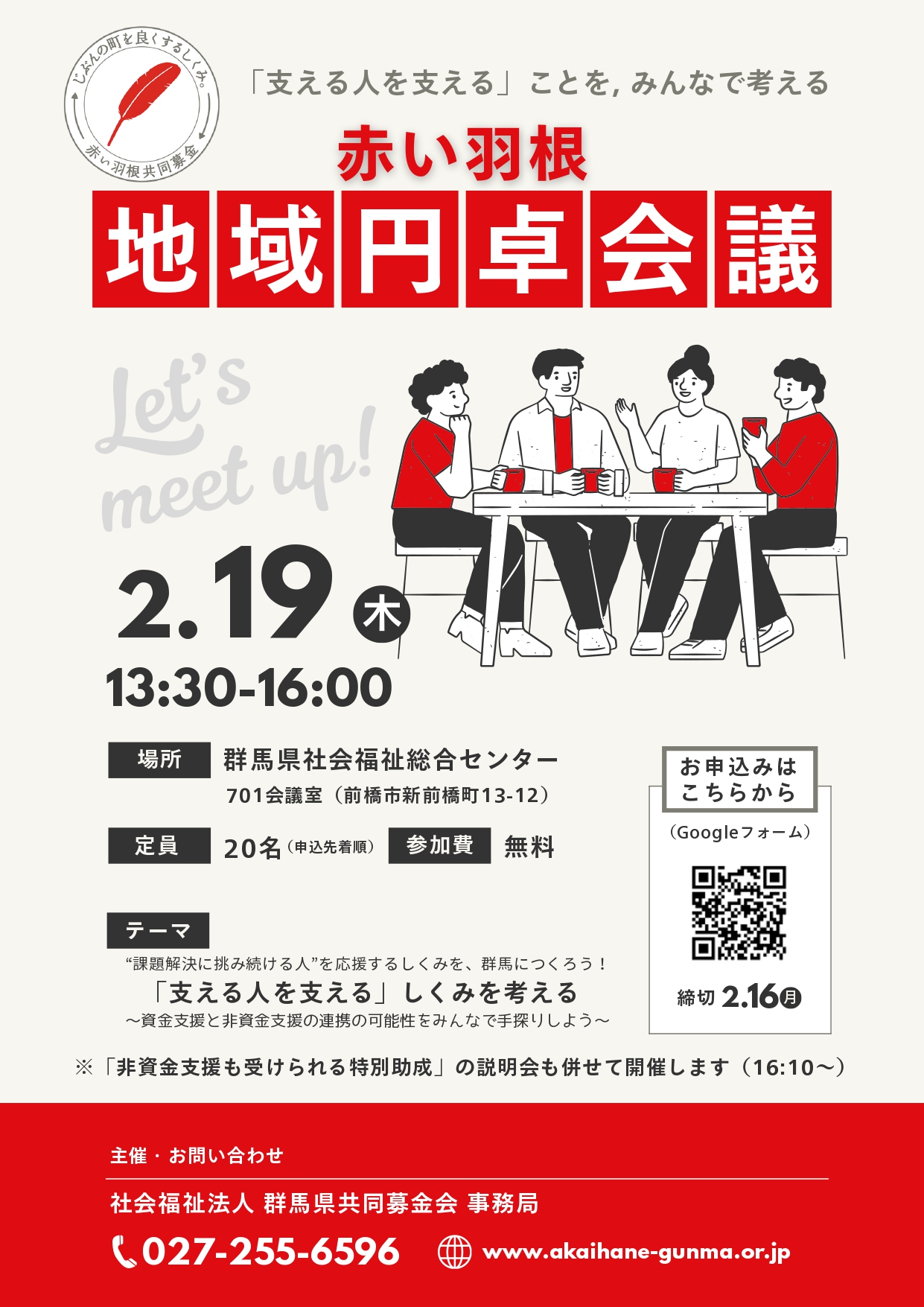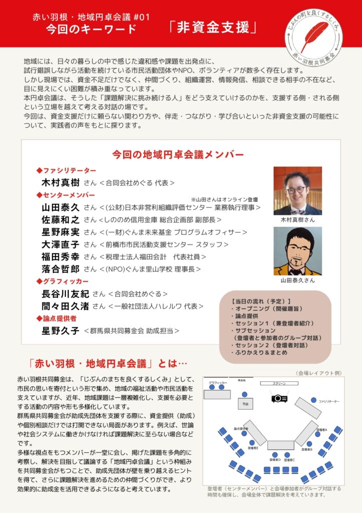 群馬県共同募金会から「赤い羽根・地域円卓会議」のお知らせです。