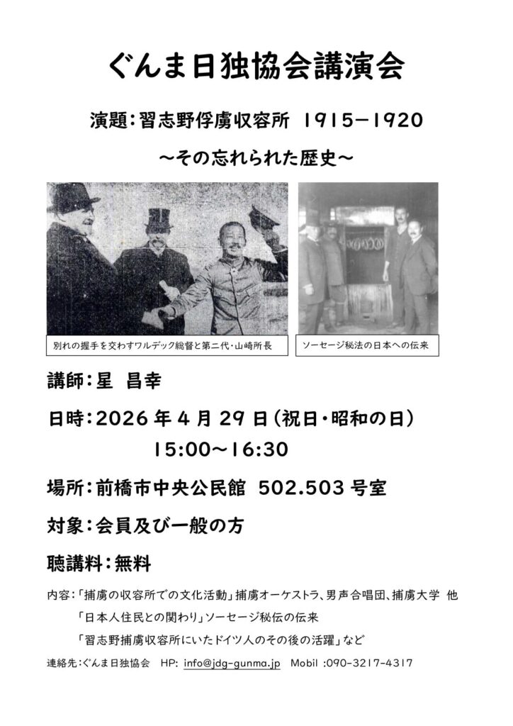 ぐんま日独協会「〜その忘れられた歴史〜習志野俘虜収容所 1915-1920」