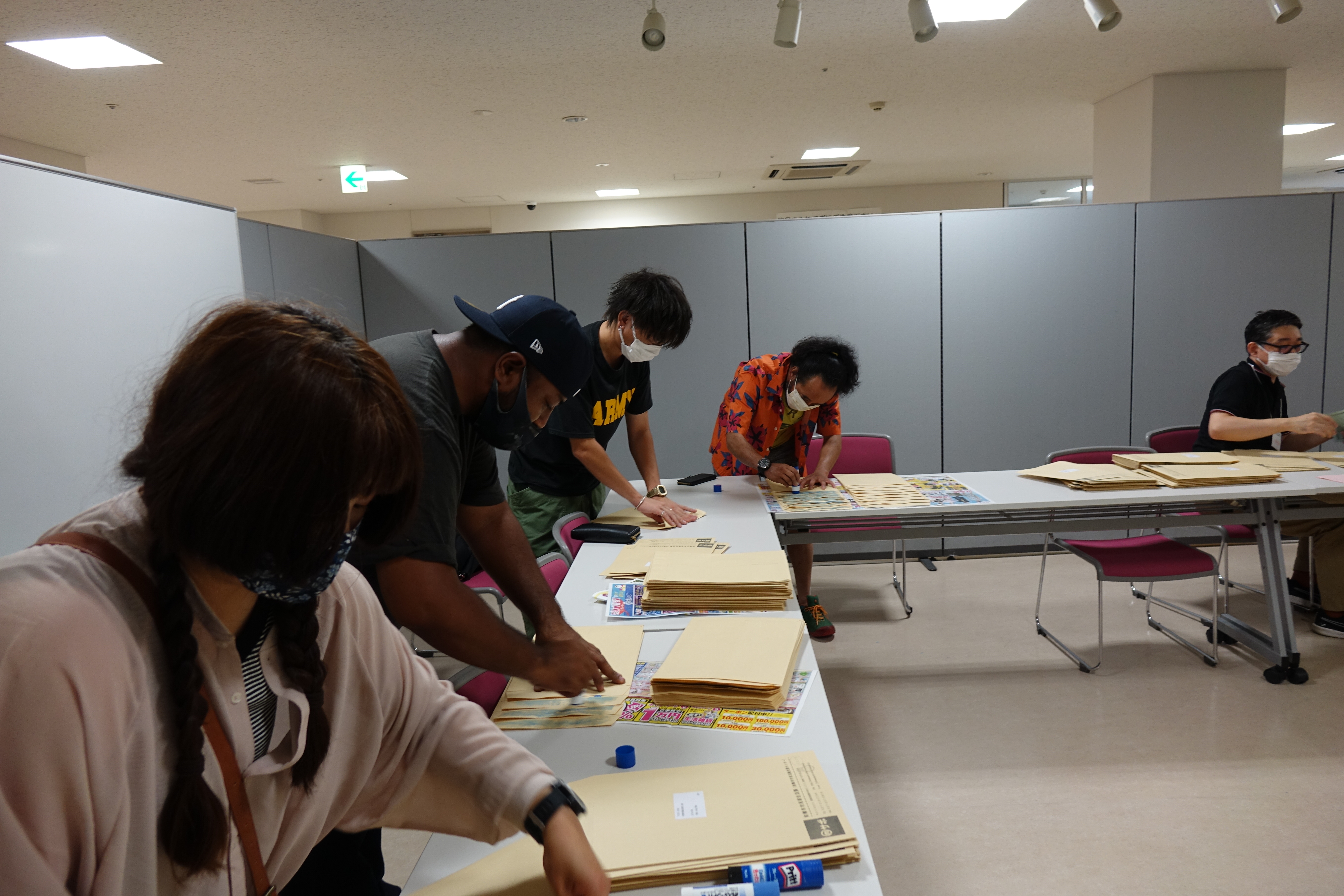 アットホームな雰囲気で封入、のり付け作業を楽しく終えることができました。終了後もサポーターさん同士のお話が弾んでいました。